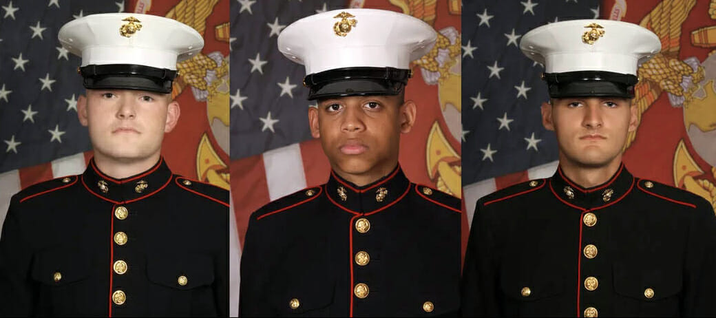 ലാൻസ് കോർപ്പറൽ റാങ്കിലുള്ളവരാണ് മരിച്ച മൂവരും. മെറാക്സ് ഡോക്കറി (23), ടാനർ കാൾട്ടൻബെർഗ് (19), ഇവാൻ ഗാർസിയ (23) എന്നീ സൈനികരാണ് മരിച്ചത്. മരിച്ച സൈനികരിൽ ഒരാളുടെ അമ്മയാണ് മകനെ കാണാനില്ലെന്ന് പെൻഡർ കൗണ്ടി ഷെരീഫിന്റെ ഓഫീസിൽ വിളിച്ചറിയിച്ചത്.