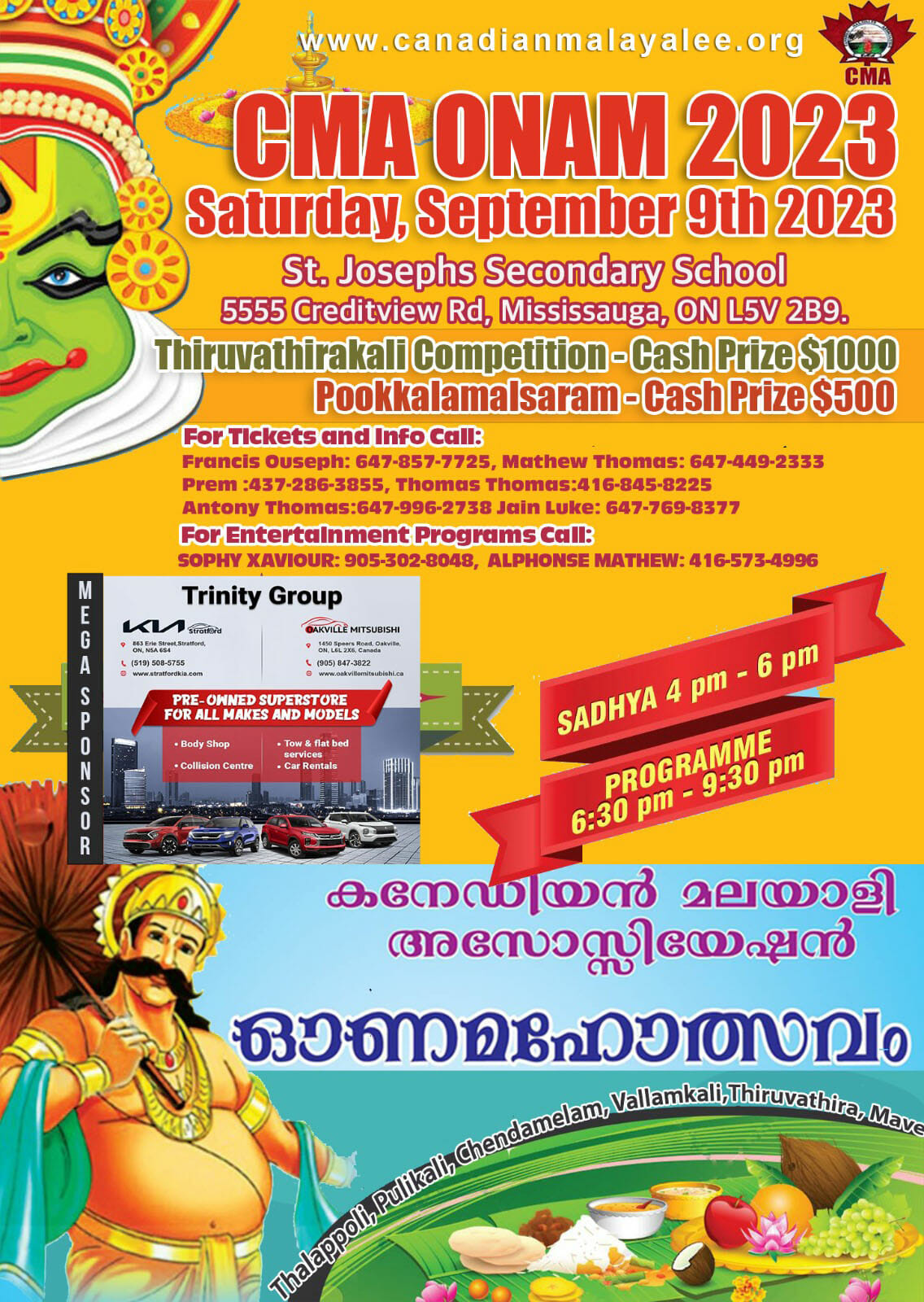 Canadian Malayali Association's Onamahotsavam on September 9