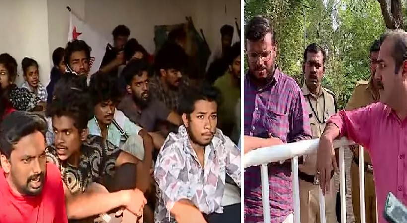 പുതിയതായി സര്വകലാശാല സെനറ്റിലേക്ക് 18 പേരെയാണ് സര്ക്കാര് നോമിനേറ്റ് ചെയ്തത്. ഇവരില് സി.പി.എം അനുകൂല സംഘടനകളുമായും യു.ഡി.എഫ് അനുകൂല സംഘടനകളുമായും ബന്ധമുള്ളവരുണ്ട്. ഇവരെയാരെയും ഹാളിന് അകത്ത് പ്രവേശിക്കുന്നതില് നിന്നും എസ്എഫ്ഐ വിലക്കിയില്ല. എന്നാല്, ബാലൻ പൂത്തേരിയടക്കം സംഘപരിവാർ ബന്ധമുള്ള ആറ് പേരെയാണ് പ്രവർത്തകർ തടഞ്ഞത്. ഇവർ നിലവിൽ ഗേറ്റിന് പുറത്ത് നിൽക്കുകയാണ്. ഇവരെ ബലം പ്രയോഗിച്ച് നീക്കാനുള്ള പോലീസ് ശ്രമം സ്ഥലത്ത് സംഘർഷത്തിന് വഴിവച്ചു.