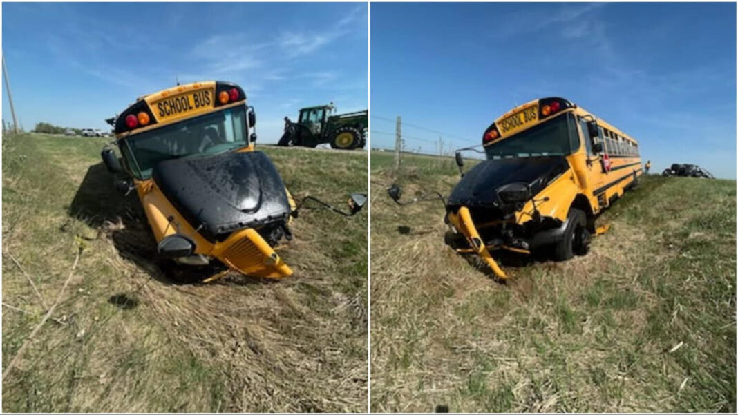 സ്കൂൾ ബസ് പിന്നിൽ നിന്ന് ട്രാക്ടർ ഇടിക്കുകയായിരുന്നു. പ്രൈറി സ്പിരിറ്റ് സ്കൂൾ ഡിവിഷനിലെ സ്കൂൾ ബസ് ആണ് അപകടത്തിൽപ്പെട്ടത്. സംഭവസമയത്ത് 31 കുട്ടികൾ ബസിലുണ്ടായിരുന്നതായി പൊലീസ് അറിയിച്ചു. അപകടത്തിൽ നിസ്സാര പരുക്കേറ്റ എട്ട് കുട്ടികളെ പ്രാദേശിക ആശുപത്രികളിൽ പ്രവേശിപ്പിച്ചു. മുൻകരുതൽ എന്ന നിലയിൽ കൂട്ടിയിടിയിൽ ഉൾപ്പെട്ട രണ്ട് ഡ്രൈവർമാരെയും ആശുപത്രിയിൽ പ്രവേശിപ്പിച്ചു. സംഭവത്തിൽ അന്വേഷണം ആരംഭിച്ചു.