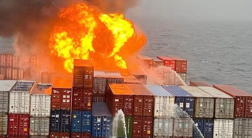 തീപിടിത്തത്തെ തുടര്‍ന്ന് കപ്പലിലെ 50 കണ്ടെയ്‌നറുകള്‍ കടലില്‍ വീണതായും റിപ്പോര്‍ട്ടുണ്ട്. കോസ്റ്റുഗാര്‍ഡിന്റെയും നേവിയുടെയും കപ്പലുകളും ഡോണിയര്‍ വിമാനങ്ങളും സംഭവസ്ഥലത്തെത്തി രക്ഷാപ്രവര്‍ത്തനം തുടരുകയാണ്. കപ്പലിലുണ്ടായിരുന്ന 18 പേര്‍ കടലില്‍ ചാടിയെന്നാണ് വിവരം. 22 പേര്‍ കപ്പലില്‍ തന്നെ തുടരുന്നുണ്ട്.