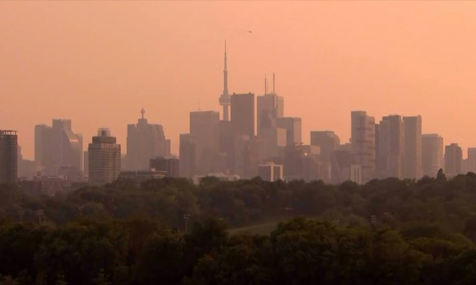 ടൊറൻ്റോ : തെക്കൻഒൻ്റാരിയോയിലെ മിക്കയിടങ്ങളിലും, പ്രത്യേകിച്ച് ജിടിഎയിലും, കനത്ത കാട്ടുതീ പുക മൂടിയതായി എൻവയൺമെൻ്റ് കാനഡ റിപ്പോർട്ട് ചെയ്തു. കാട്ടുതീയിൽ നിന്നുള്ള പുക, ശനിയാഴ്ച ഉച്ചയ്ക്കും വൈകുന്നേരവും, വായുവിന്റെ ഗുണനിലവാരം മോശമാകുന്നതിനും ദൃശ്യപരത കുറയുന്നതിനും കാരണമാകുന്നുണ്ടെന്ന് ദേശീയ കാലാവസ്ഥാ സേവനം പറയുന്നു.