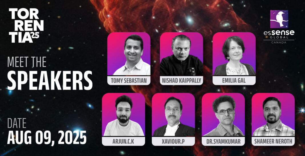 നിഷാദ് കൈപ്പള്ളി, ഡോ. ശ്യാംകുമാർ, എമിലിയ ഗാൾ, സേവിയർ പുതുപ്പറമ്പിൽ, അർജുൻ സി. കെ, ഷമീർ നേരോത് എന്നിവരും വിവിധ വിഷയങ്ങളിൽ പ്രബന്ധങ്ങൾ അവതരിപ്പിക്കും. സമ്മേളനത്തിൽ പാനൽ ചർച്ചകളും, ശ്രോതാക്കൾക്ക് പ്രഭാഷകരുമായി സംവദിക്കാനുള്ള അവസരവും ഉണ്ടായിരിക്കും. കൂടുതൽ വിവരങ്ങൾക്ക് torrentia.ca എന്ന വെബ്സൈറ്റ് സന്ദർശിക്കുകയോ, +1-437-983-272 എന്ന നമ്പറിൽ ബന്ധപ്പെടുകയോ ചെയ്യുക.