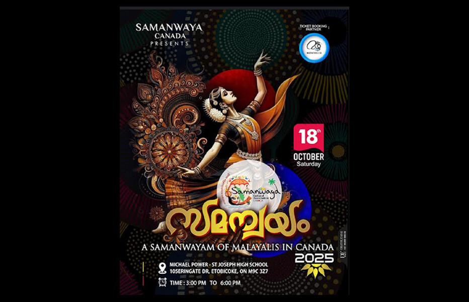 ടൊറൻ്റോ : മലയാളികളെ ജന്മനാടിന്റെ ഗൃഹാതുരതയിലേക്ക് കലയുടെ കൈപിടിച്ച് ആനയിക്കാൻ ഒരുങ്ങുകയാണ് കാനഡയിലെ പ്രമുഖ സാംസ്കാരിക സംഘടനയായ സമന്വയ. കേരളീയകലകളെയും സംസ്കാരത്തെയും ചേര്ത്തുപിടിക്കുക, ഒപ്പം മറ്റ് നാടുകളുടെ സംസ്കാരങ്ങളെ ആദരപൂര്വ്വം തിരിച്ചറിയുക എന്ന സന്ദേശം ഉയർത്തി സമന്വയ കാനഡ ഒരുക്കുന്ന “സമന്വയം-2025” ഒക്ടോബര് 18 ശനിയാഴ്ച അരങ്ങിലെത്തും. എറ്റോബിക്കോ മൈക്കില് പവര് സെന്റ് ജോസഫ്സ് ഹൈസ്കൂള് ഓഡിറ്റോറിയമാണ് (105 Eringate Dr. Etobicoke, ON M9C 3Z7) “സമന്വയം-2025″ത്തിന് വേദിയാവുന്നത്.