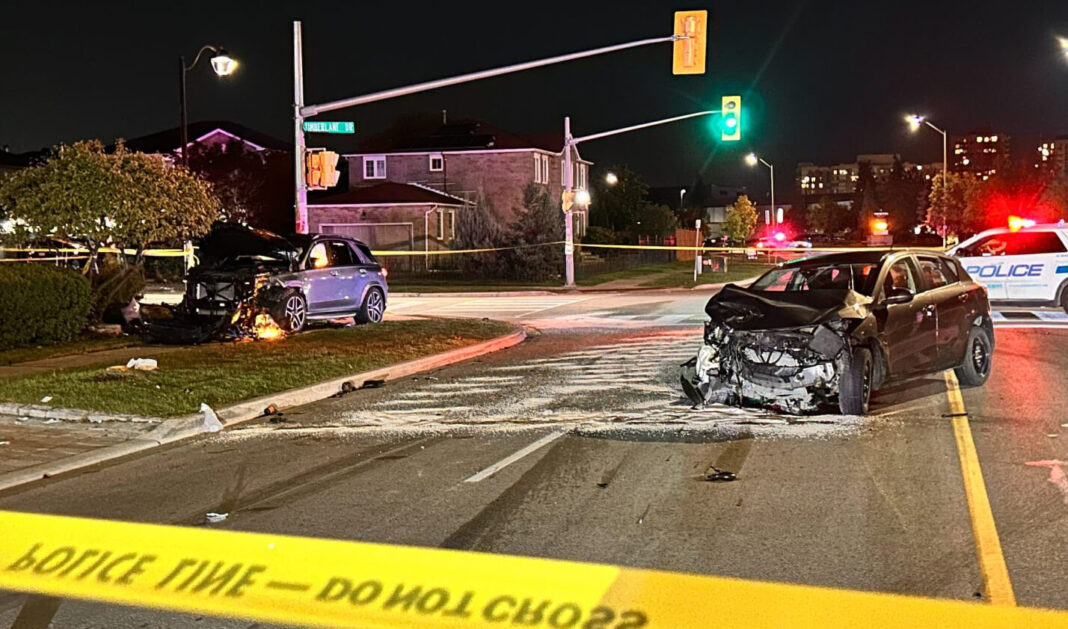ഇന്റർസെക്ഷനിൽ രണ്ട് വാഹനങ്ങൾ അപകടത്തിൽപ്പെട്ടതായും നാല് കാൽനടയാത്രക്കാർക്ക് പരുക്കേറ്റതായും അന്വേഷണ ഉദ്യോഗസ്ഥർ അറിയിച്ചു. മൂന്ന് കുട്ടികളെയും ഒരു മുതിർന്ന വ്യക്തിയെയും ആശുപത്രിയിൽ പ്രവേശിപ്പിച്ചതായി പീൽ പാരാമെഡിക്സ് റിപ്പോർട്ട് ചെയ്തു. കാൽനടയാത്രക്കാരിൽ മൂന്ന് പേർ ആശുപത്രിയിൽ സുഖം പ്രാപിച്ചുവരുന്നു. അപകടത്തിൽ ഉൾപ്പെട്ട രണ്ടു വാഹനങ്ങളുടെയും ഡ്രൈവർമാർക്ക് നിസാര പരുക്കേറ്റു. അപകടത്തിന്റെ കാരണം വ്യക്തമല്ല. അന്വേഷണം ആരംഭിച്ചു.