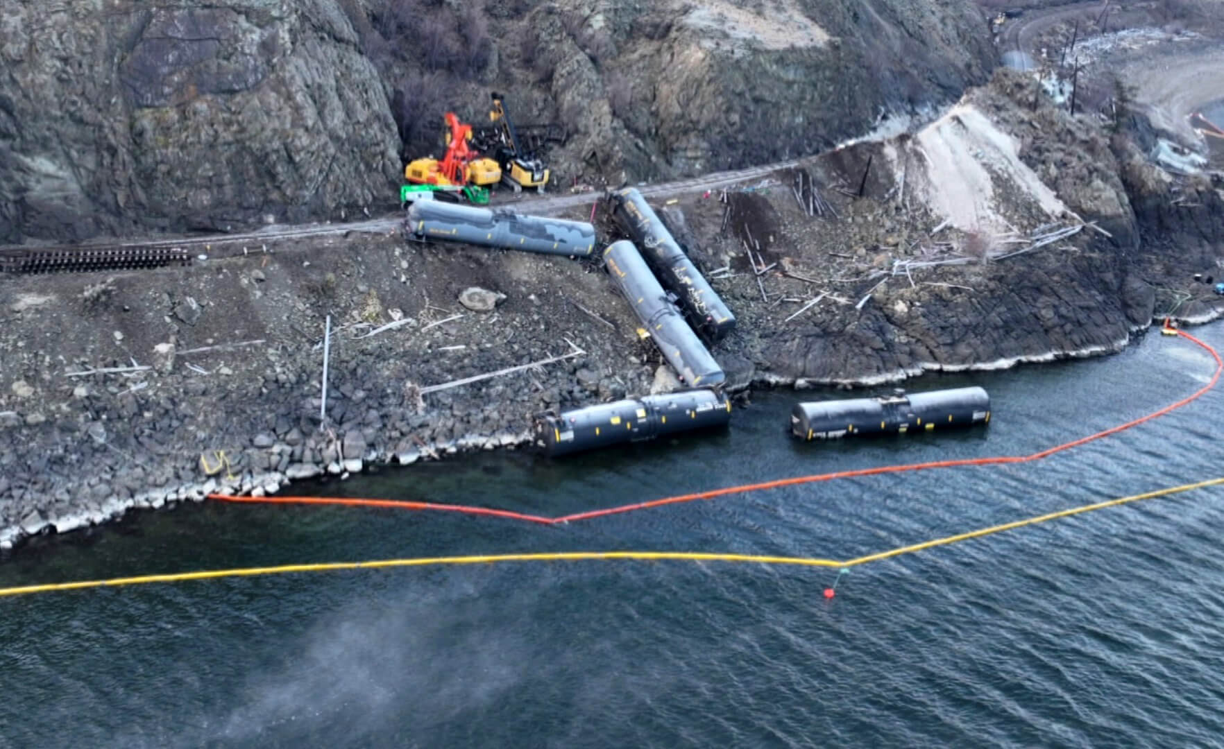 വൻകൂവർ : വാരാന്ത്യത്തിൽ ട്രെയിൻ പാളം തെറ്റിയതിനെ തുടർന്ന് 80,000 ലിറ്ററിലധികം ജെറ്റ് ഇന്ധനം കംലൂപ്സ് തടാകത്തിലേക്ക് ഒഴുകിയതായി ബ്രിട്ടിഷ് കൊളംബിയ പരിസ്ഥിതി മന്ത്രാലയം അറിയിച്ചു. നവംബർ 1 ശനിയാഴ്ച വൈകിട്ട് ഏഴുമണിയോടെ ചെറി ക്രീക്കിന് സമീപം കനേഡിയൻ പസഫിക് കൻസാസ് സിറ്റി (സിപികെസി) ട്രെയിനാണ് പാളം തെറ്റിയത്. ഒരു ലോക്കോമോട്ടീവും ഏകദേശം 17 ബോഗികളുമാണ് പാളം തെറ്റിയത്. ബോഗികളിൽ നാലെണ്ണം ഇന്ധനം നിറച്ചതും അഞ്ചെണ്ണം ജിപ്സവും ഒരെണ്ണം പൾപ്പ് ഉൽപ്പന്നങ്ങൾ നിറച്ചതുമായിരുന്നു.