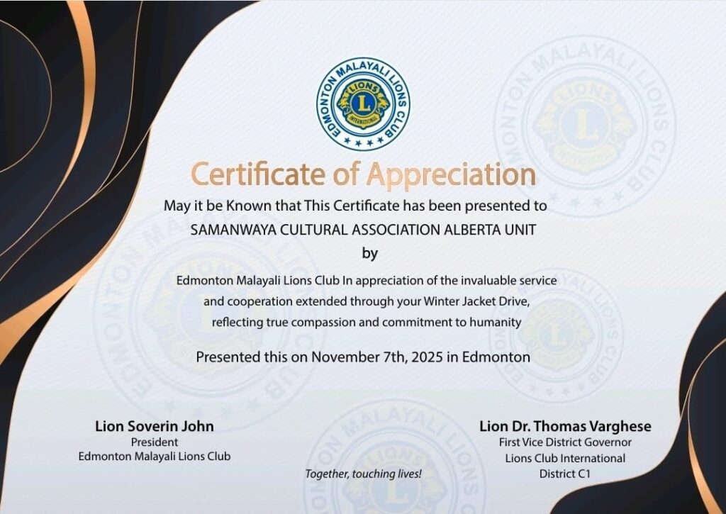 . ലോക കേരളസഭ അംഗവും സമന്വയ കാനഡ മുന്‍ പ്രസിഡന്റുമായ ഷാജേഷ് പുരുഷോത്തമന്‍, ആല്‍ബർട്ട യൂണിറ്റ് കമ്മിറ്റി അംഗങ്ങളായ ജോമോന്‍ ജോസഫ്, ലിജിത ഷാജേഷ്, സുമേഷ് ജെ നായര്‍, അനില്‍ പിള്ള, സമന്വയ അംഗം നെബുസന്‍, എഡ്മിന്റന്‍ മലയാളി ലയണ്‍സ് ക്ലബ് സെക്രട്ടറി അനൂപ് അബ്രഹാം, ഫസ്റ്റ് വിപി ജോസ് സിറിയക് , അഡ്മിനിസ്‌ട്രേറ്റര്‍ സരിത മാത്യു, ലയണ്‍ നേഹ ജോസ് ഗൈഡിങ് ലയണ്‍ ബാര്‍ബ്, ലഡുക് ലയണ്‍സ് ക്ലബ് പ്രസിഡൻ്റ്‌ വാള്‍ട്ടര്‍, ലയണ്‍ ജാക്ക് എന്നിവരും ചടങ്ങില്‍ പങ്കെടുത്തു.