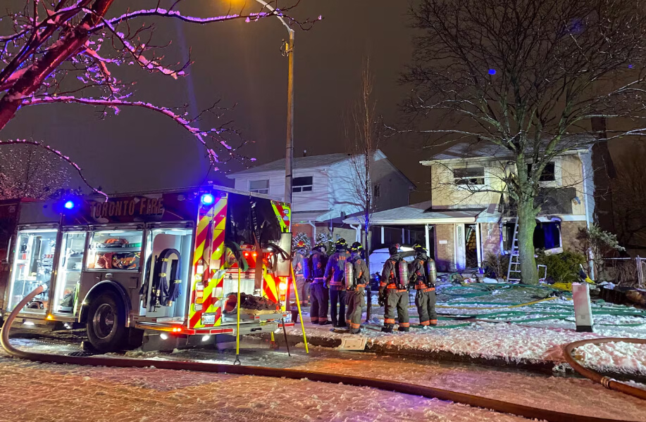 സംഭവസ്ഥലത്ത് എത്തിയ അഗ്നിശമന സേന ജീവനക്കാർ വീടിന്‍റെ രണ്ടാം നിലയിൽ കനത്ത പുകയും തീയും ഉയരുന്നത് കണ്ടെത്തി. രണ്ടാം നിലയിലുണ്ടായിരുന്ന രണ്ടു പേരെ രക്ഷപ്പെടുത്തിയതായി ടൊറൻ്റോ ഫയർ അറിയിച്ചു. ഗുരുതരമായി പരുക്കേറ്റ ഇരുവരെയും ആശുപത്രിയിൽ പ്രവേശിപ്പിച്ചു. വീട്ടിൽ തീ ഇപ്പോഴും പടരുകയാണ്. വീടിനുള്ളിൽ മറ്റാരെങ്കിലും ഉണ്ടോ എന്ന് വ്യക്തമല്ല.