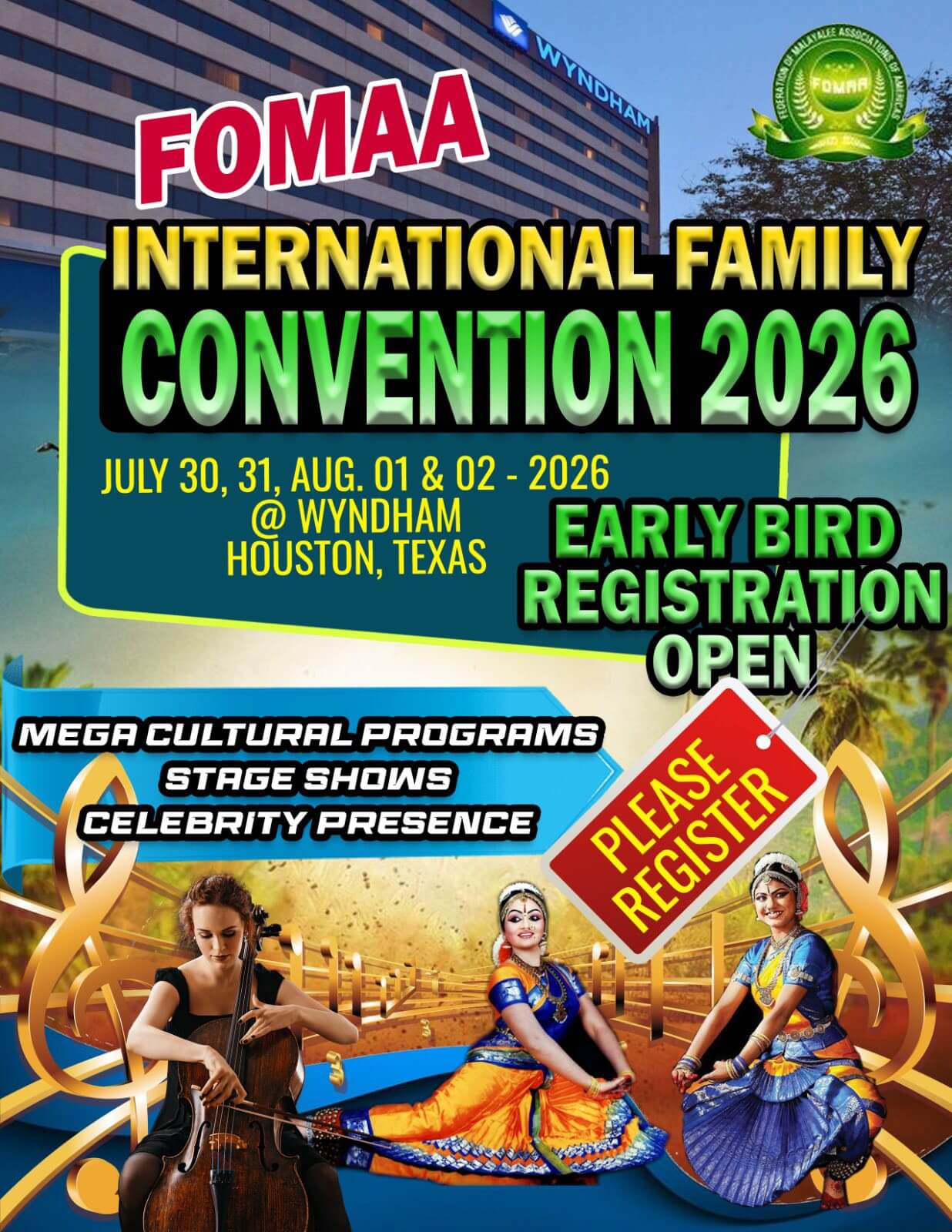 ഏര്ളി ബേര്ഡ് രജിസ്ട്രേഷനുള്ള ലിങ്ക് : https://fomaafamilyconvention2026.com/Registration.php