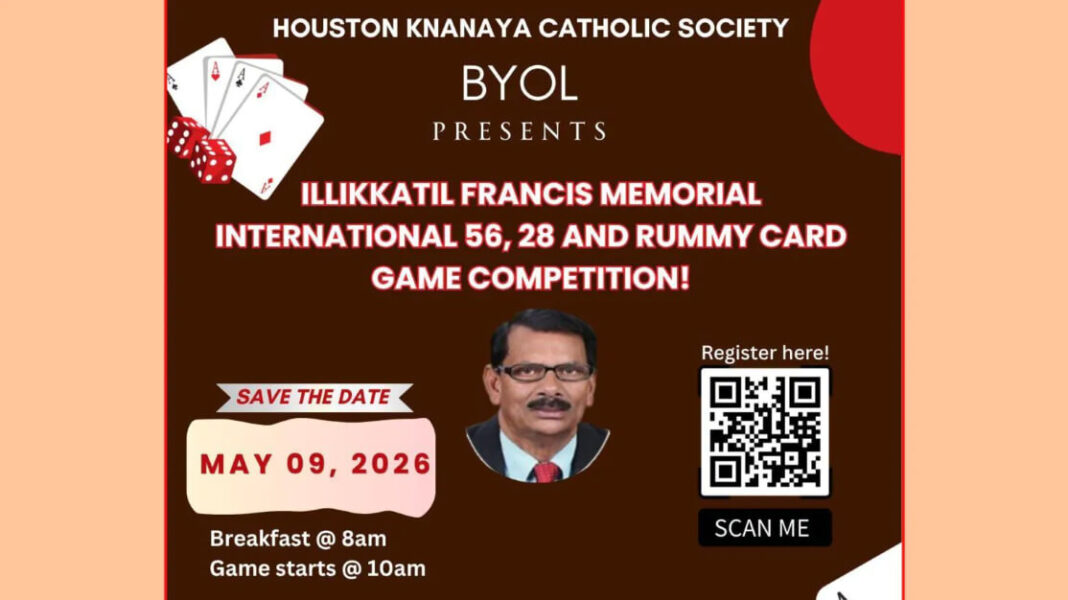 ഹ്യൂസ്റ്റൺ KCS BYOL “56, 28 & റമ്മി കാര്‍ഡ് ടൂര്‍ണമെൻ്റ്” മെയ് 9-ന്