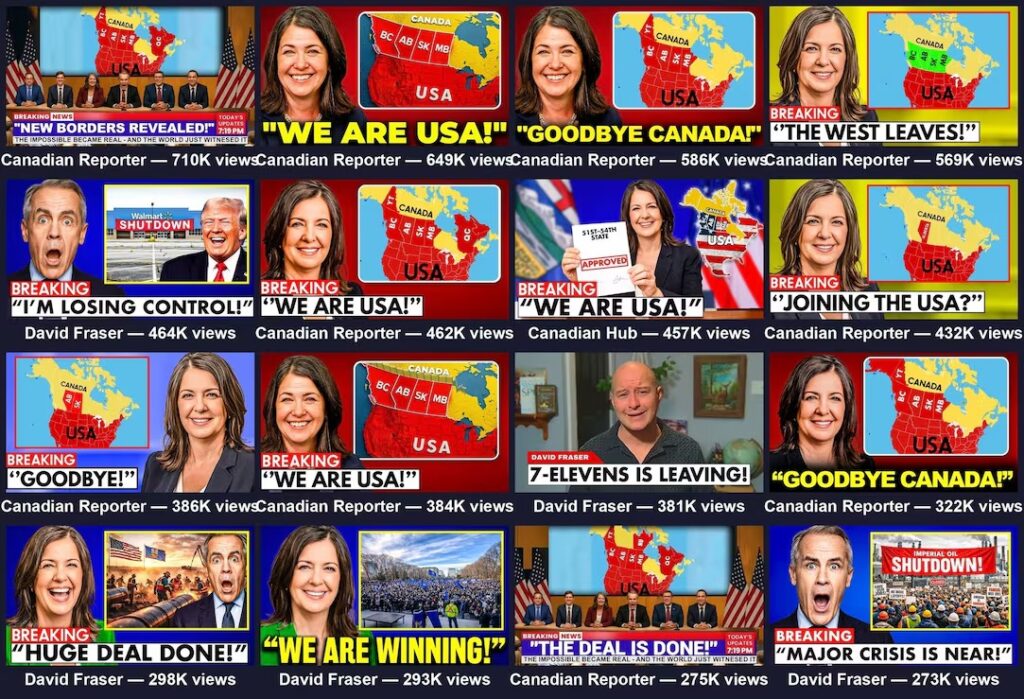 ഏകദേശം 40 മില്യൺ ആളുകൾ ഈ വീഡിയോകൾ കണ്ടിട്ടുണ്ട്. രാഷ്ട്രീയ ഭിന്നതകൾ മുതലെടുക്കാൻ നിർമ്മിച്ച ഇത്തരം വീഡിയോകളെ ഗവേഷകർ ‘സ്ലോപ്പഗണ്ട’ എന്നാണ് വിശേഷിപ്പിക്കുന്നത്. ഒരേ തിരക്കഥ ഉപയോഗിച്ച് വിവിധ ചാനലുകൾ വഴി ഒരേ സമയം ഇവ പ്രചരിപ്പിക്കുന്നു.ഈ ചാനലുകളിൽ അഭിനയിച്ച പലരും തങ്ങൾ ചതിക്കപ്പെടുക യായിരുന്നുവെന്ന് വെളിപ്പെടുത്തി. കാൽഗറി സ്വദേശിയായ മാറ്റ് ബെറി എന്ന മീഡിയ വർക്കർ, താൻ ഒരു ജോലി പരസ്യത്തിന് മറുപടി നൽകി അയച്ച ഓഡിഷൻ വീഡിയോ തന്റെ അനുവാദമില്ലാതെ ചാനലിൽ ഉപയോഗിച്ചതായി പറഞ്ഞു. താൻ വിഘടനവാദത്തിന് എതിരാണെന്നും തന്റെ ചിത്രം ദുരുപയോഗം ചെയ്തതിൽ വലിയ മാനസിക വിഷമമുണ്ടെന്നും അദ്ദേഹം വ്യക്തമാക്കി.